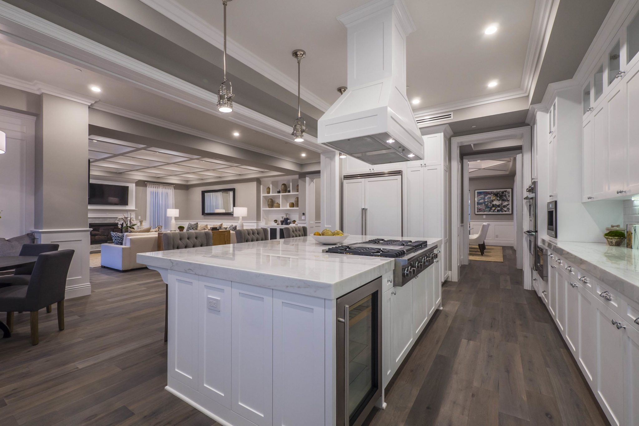 Welcome to stunning 15225 De Pauw, overlooking gorgeous Potrero Canyon in Pacific Palisades. This gorgeous foot home features 5 bedrooms and 6.5 bathrooms on a large lot. This home combines a traditional Cape Cod exterior and open floor-plan featuring disappearing Fleetwood pocket doors. A brightly lit formal living room extends to the dining room and gourmet kitchen featuring Viking appliances and a breakfast nook, opening to a spacious family room. Beautiful white oak floors with a natural finish run throughout the home’s three levels. A full lower level features theater, family room, office, and gym. Upstairs the master suite boasts his and hers closets, a luxurious Carrera marble bathroom, and a private balcony that looks over the canyon and peaceful yard. Perfect for entertaining, the beautifully landscaped backyard features a large patio, expansive lawn, and infinity pool and spa. A rooftop deck offers sweeping views, completing the home and adding to the quintessential indoor/outdoor aspect of Southern California living.