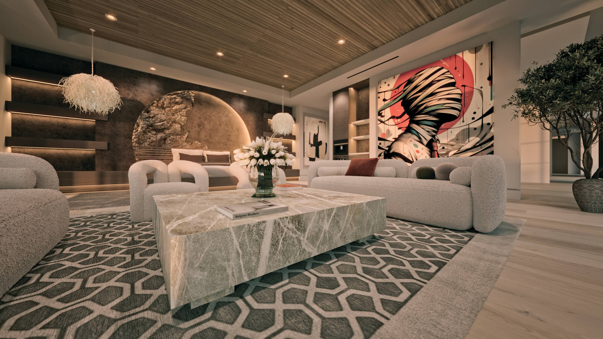 - Oversized media lounge with an impressive multi-screen video wall, perfect for immersive viewing or dynamic entertainment